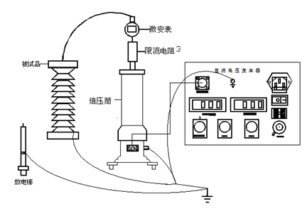 將機箱、倍壓筒放置到合適位置分別聯(lián)接好電源線、電纜線和接地線,保護(hù)接地線與工作接地線以及放電棒的接地線均應(yīng)單獨接到試品的地線上(即一點接地),電源開關(guān)放在關(guān)斷位置并檢查調(diào)壓電位器應(yīng)在零位。過電壓保護(hù)整定值一般為試驗電壓的1.1倍。順時針方向平緩調(diào)節(jié)調(diào)壓電位器,輸出端即從零開始升壓,升至所需電壓后,按規(guī)定時間記錄電流表讀數(shù),并檢查控制箱及高壓輸出線有無異?,F(xiàn)象及聲響。
