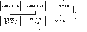穩(wěn)壓源是高精度低紋波電源,可提供10A的電流輸出。穩(wěn)流源輸出的電流受其分擋切換控制電路的控制。當(dāng)測(cè)量選擇不同擋位時(shí),輸出不同的穩(wěn)定電流。當(dāng)恒流電流通過被測(cè)電阻時(shí)在被測(cè)電阻上產(chǎn)生穩(wěn)定的電壓信號(hào),該信號(hào)經(jīng)計(jì)算機(jī)處理后由液晶顯示器直接顯示電阻值。